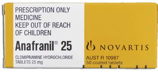 Anafranil works on the central nervous system and treats obsessive compulsive disorder, panic attacks, depression, and ongoing pain.